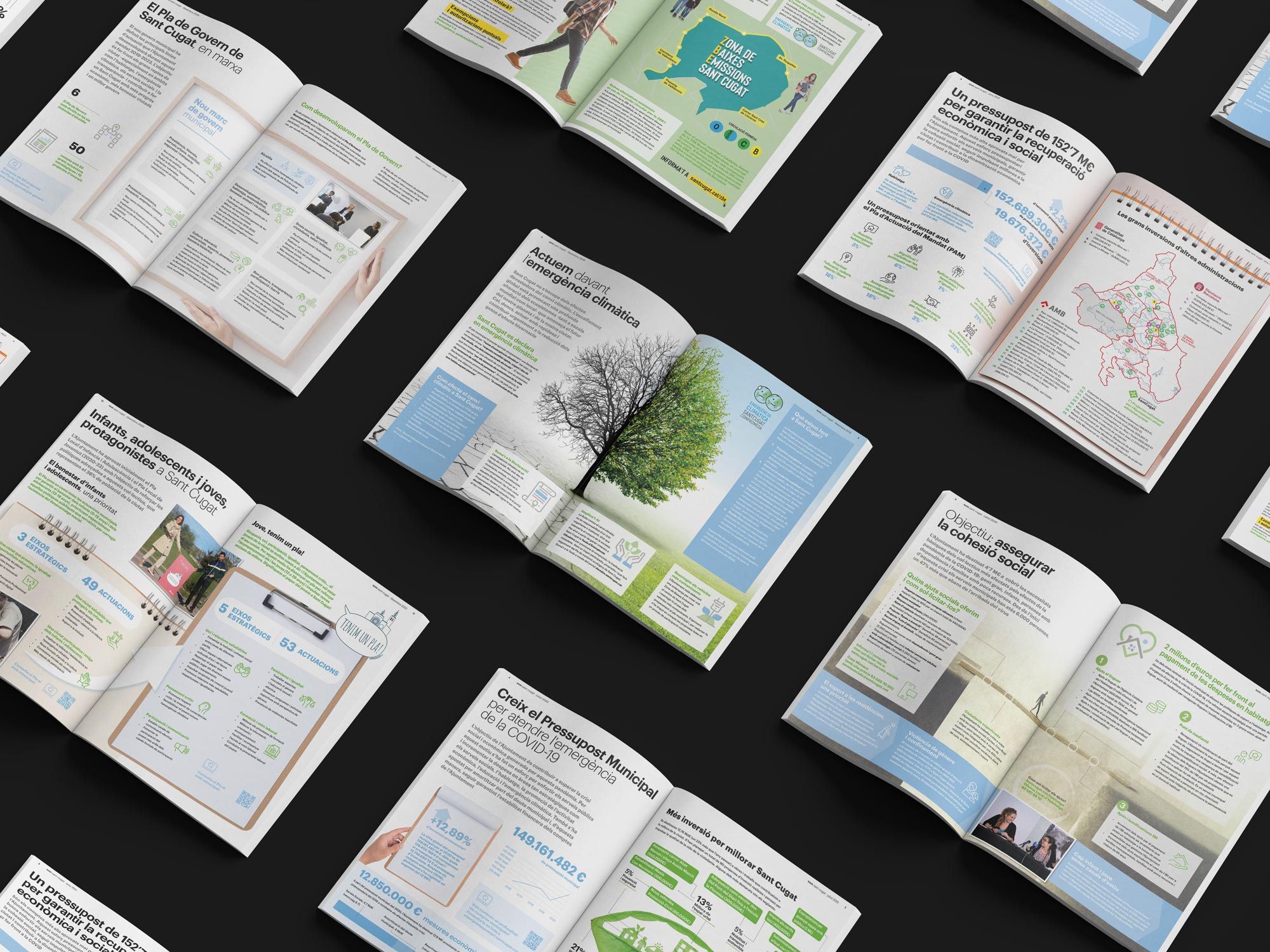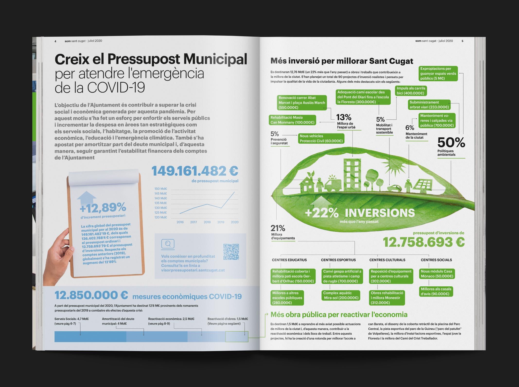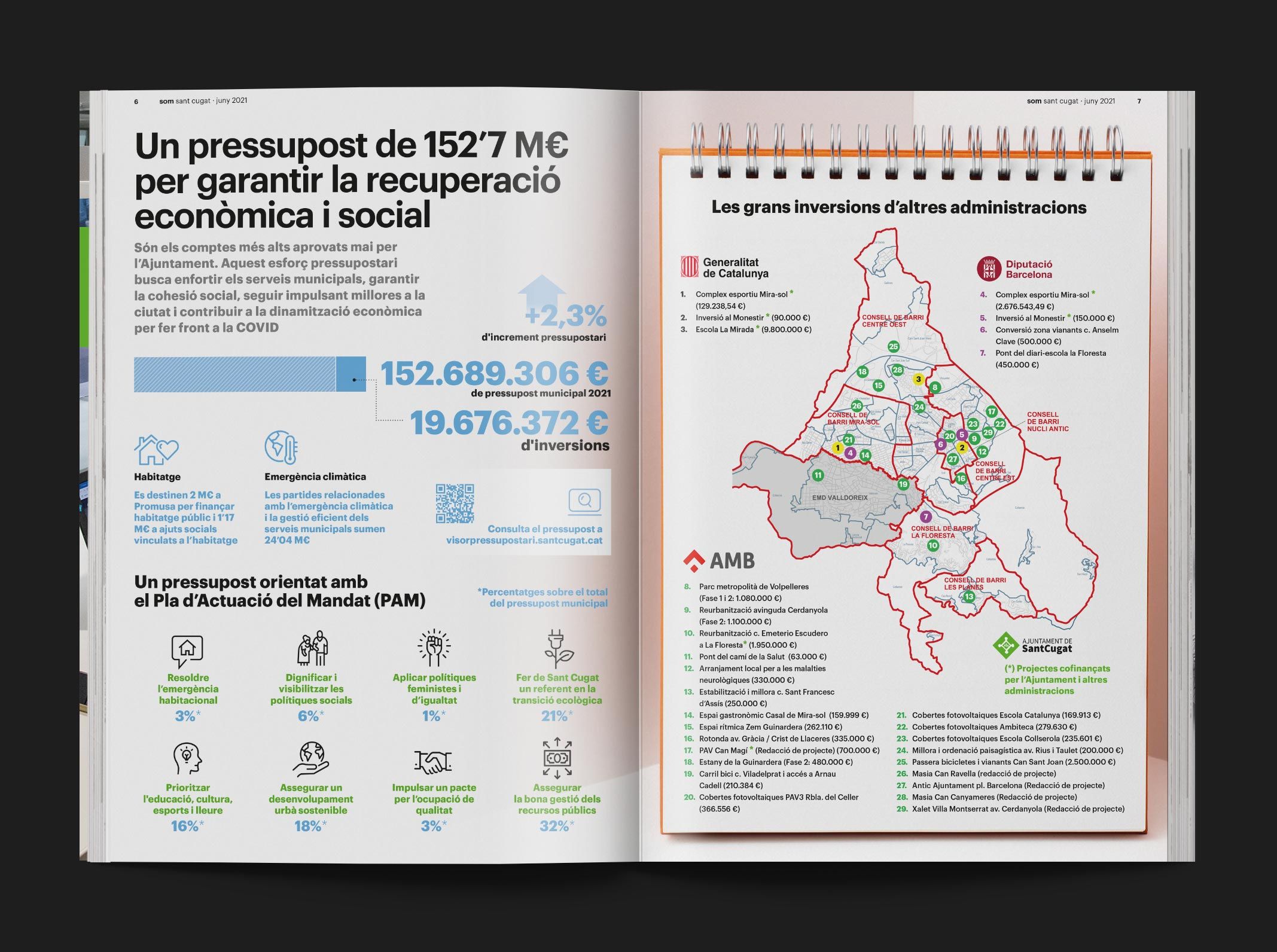 L’encàrrec era fer més visual i entenedor el contingut als lectors. És per aquest motiu que es van treballar conjuntament amb el departament de comunicació de l’ajuntament les diverses temàtiques. Mitjançant infografies a doble pàgina, xifres clares i la segregació de la informació en petits mòduls, la comunicació esdevé integradora, oberta i accessible per a tothom.