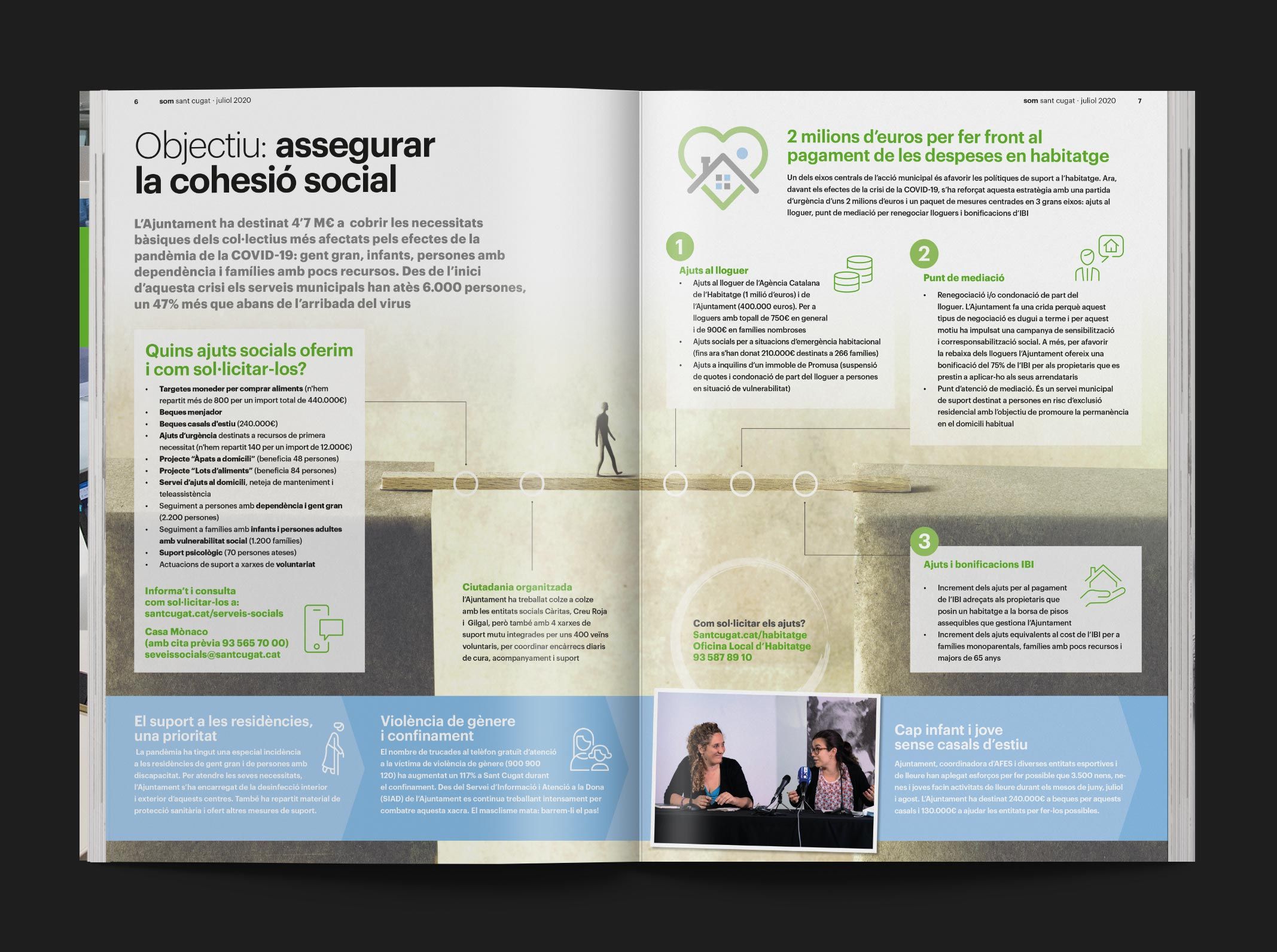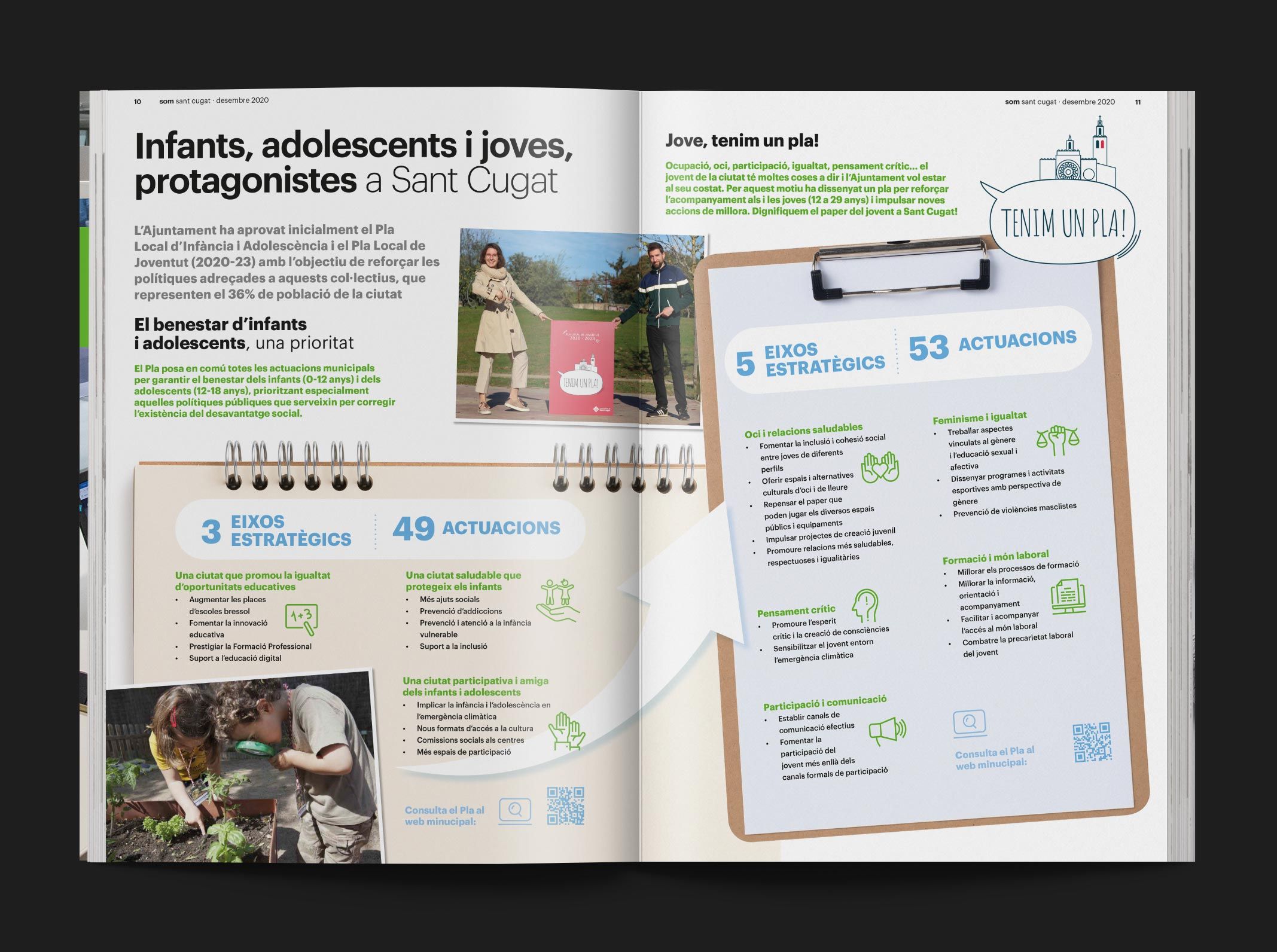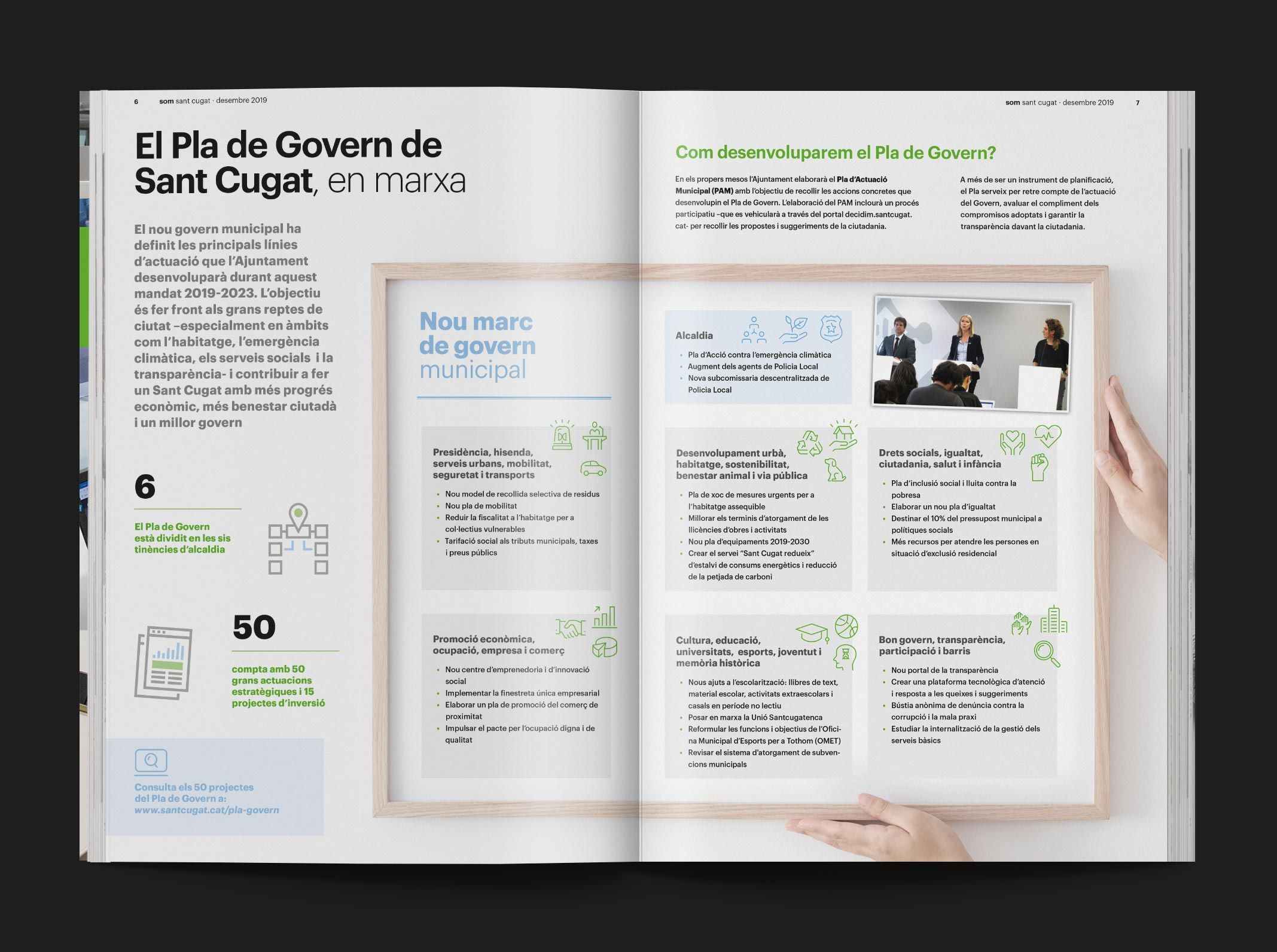 L’encàrrec era fer més visual i entenedor el contingut als lectors. És per aquest motiu que es van treballar conjuntament amb el departament de comunicació de l’ajuntament les diverses temàtiques. Mitjançant infografies a doble pàgina, xifres clares i la segregació de la informació en petits mòduls, la comunicació esdevé integradora, oberta i accessible per a tothom.